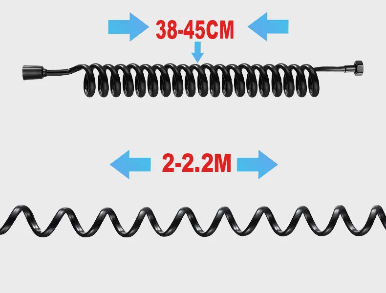 The normal expansion and contraction of the hose is: 41-45cm. After stretching, it can reach: 2M-2.5M